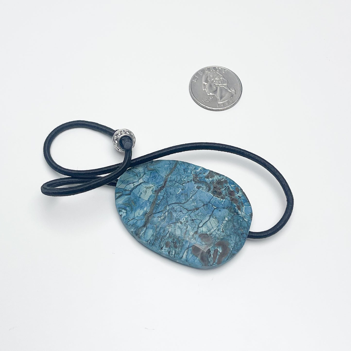 Elevate your everyday style with the Cyan Luxe hair tie. Featuring a striking chrysocolla stone in swirling cyan and chocolate tones, each piece is one-of-a-kind—designed to look effortlessly chic in your hair. Set on a sleek black cord with a silver accent, this accessory balances natural elegance with modern luxury, making it the perfect finishing touch for both casual and elevated looks.